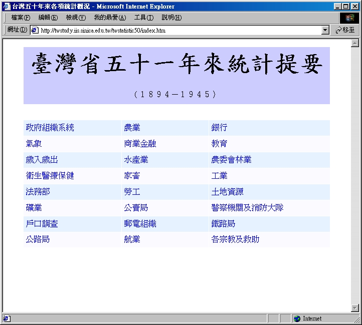 進入 1894-1945年臺灣省統計提要